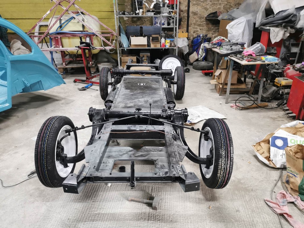 dépose du châssis de sur les chandelles donc sur ses roues