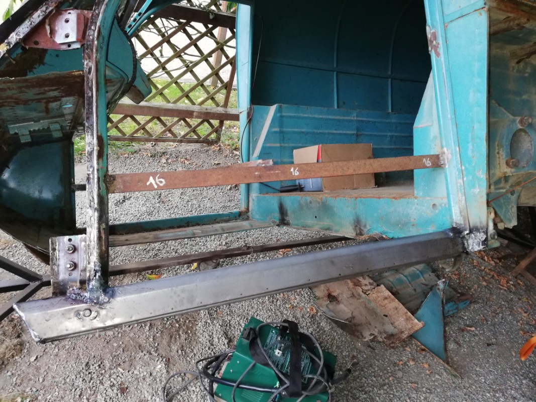 Et la carrosserie a été déplacé sous mon carport pour sécuriser les travaux de meulage et de soudure qui génère des étincelles et scories incandescentes dangereuses dans un garage fermé...