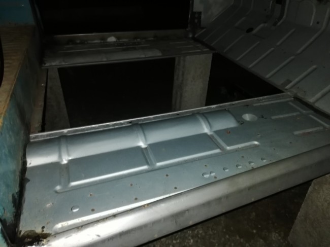 J'en ai profité pour faire un contrôle de la caisse suite au déplacement de l'encadrement consécutif à un choc avant gauche en positionnant le plancher pédale gauche...Mais c'est bon, le redressage effectué est correct...Ouf !