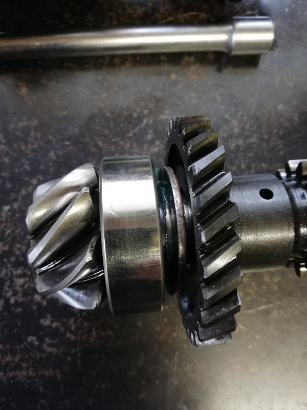 Pour le moment, j'ai remplacé les trois segments de ralenti, la cage de roulement de l'arbre de commande et ses deux roulements, le roulement à rouleaux de l'arbre primaire et le roulement contre le pignon d'attaque.