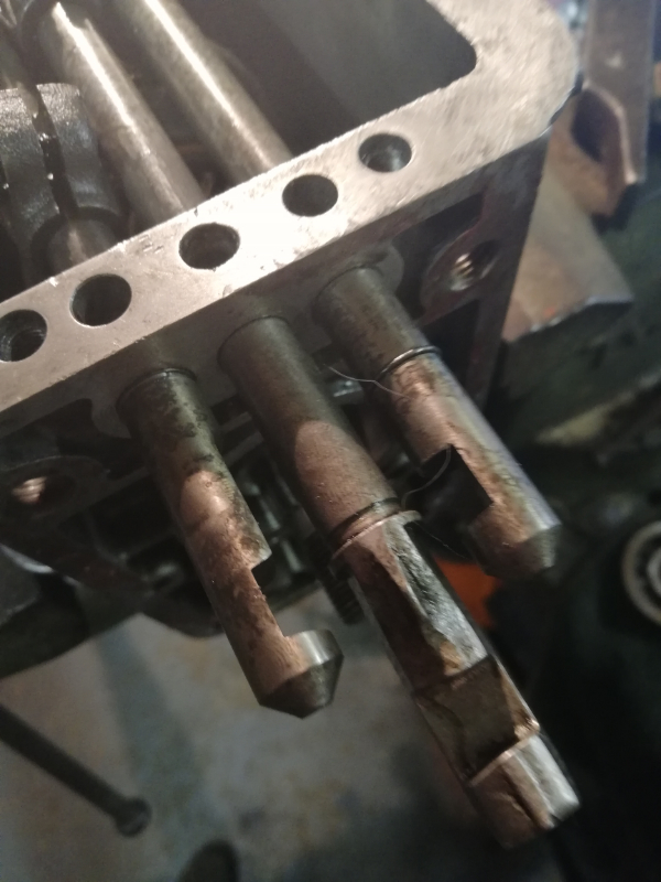 Après avoir remonté la pignonnerie , j'ai replacé les axes et les fourchettes sans difficultés particulières pour l'axe de 1ère/MA et l'axe de 4ème :