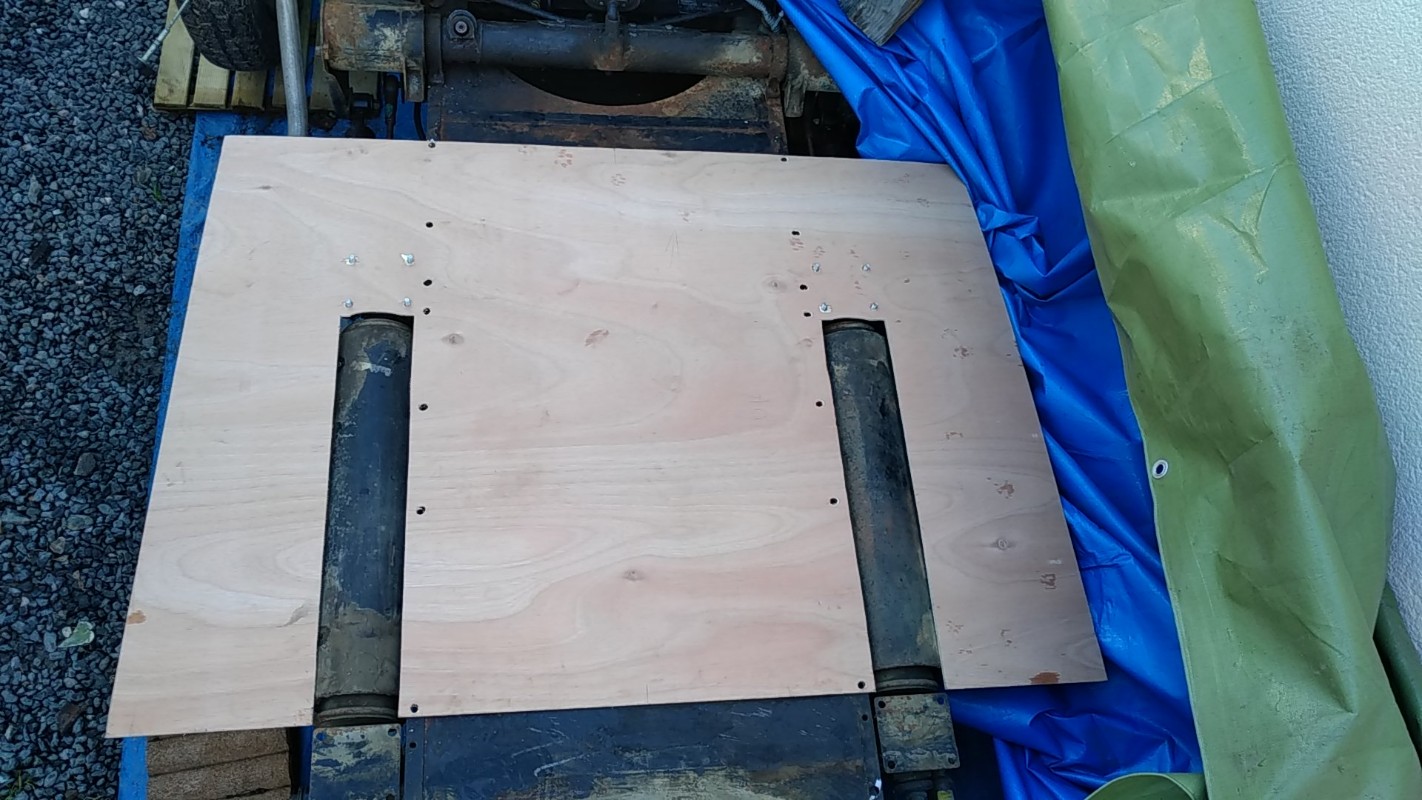 Un gabarit en contreplaqué posé sur le chassis et positionné après sur la caisse...les trous de fixation doivent correspondre.