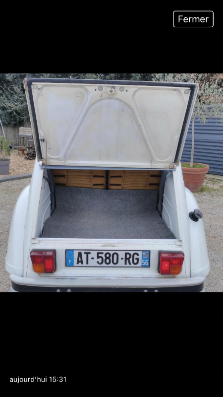 Je viens d’avoir le vendeur au téléphone, en fait la voiture et lui même sont au Luxembourg mais pour pouvoir la vendre sur le bon coin il a du mettre une ville frontalière en France. Il semble parfaitement honnête et fait partie d’un club de 2cv. La voiture est une deuxième main et il connaissait la propriétaire précédente. Il y a eu une réparation effectuée sur le plancher par un garage Citroën, je lui ai demandé une photo. Il va m’envoyer aussi le contrôle technique luxembourgeois mais qui ne sera pas valable en France. L’échappement est récent, les pneus neufs et la batterie aussi. Cela semble être une bonne occase mais qui demande une petite prise de risque...cela,fait des petits guilis dans le ventre.