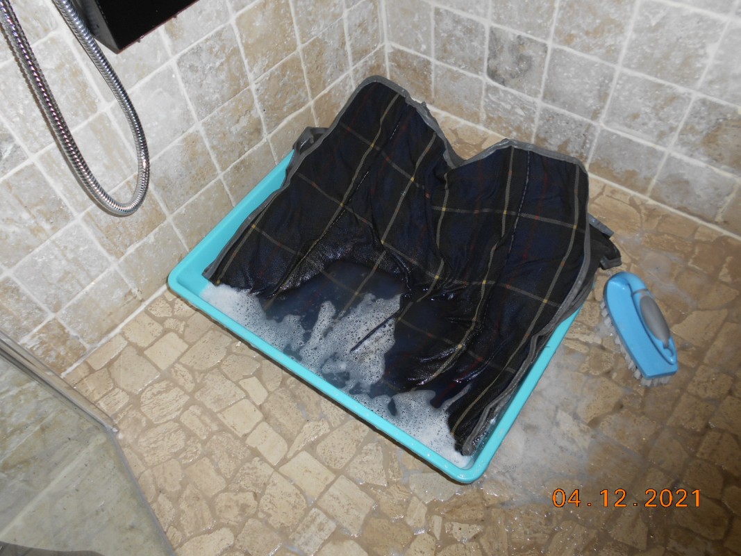 J'ai de la chance car j'ai une grande douche à l'italienne. Je vais tout laisser tremper dans une caisse à chats, bosser sur le sol et tout rincer suspendu sur un traiteau..