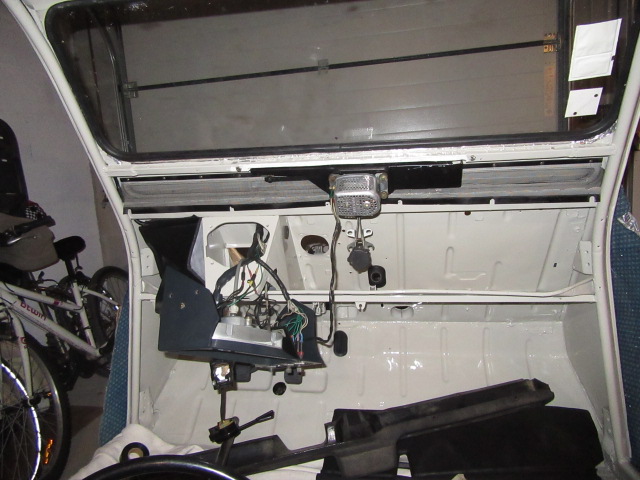 J'ai collé à la colle contact les nouvelles garnitures doublées de thibaude comme à l'origine. J'ai pu ensuite remonté le tableau de bord, le compteur et rebrancher ce qui pouvait l'être: