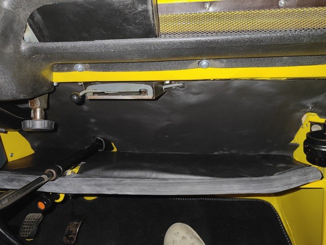 Puisqu'il me reste encore un peu d'isolant (j'ai utiliser que la moitié du rouleau), je vais faire également le bas du tablier à l'intérieur jusqu'à la jonction du plancher pédale.