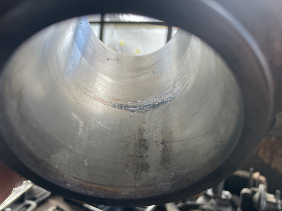 Sur cette photo, on voit une zone circulaire plus claire que le métal alentours : c'est la portée (zone qui "porte" sur le siège)