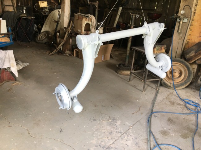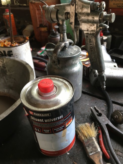 Peinture des trains avant et arrière : Châssis : Pistolet DE VILBISS et diluant universel 'LIDLE' (excellent pour nettoyer les outils !) Bonne fin de journée !