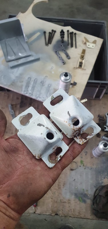 Alors pour les ceintures : je n'ai pas mis l'état de départ, mais les précédents proprios avaient pas démonté les boucles et ceinture avant peinture, y'avait du blanc partout. Mon pote a galeré : une tannée à retirer au solvant...