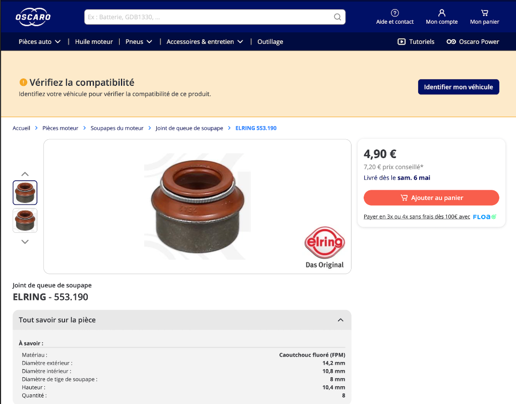 Le joint était dans une pochette "Glaser" avec tous les autres et ce n'est pas du viton. Ce n'est peut-être pas la meilleure qualité, mais le budget commence à se serrer et s'il ne fuit pas, ça fera le job le temps qu'il faudra...