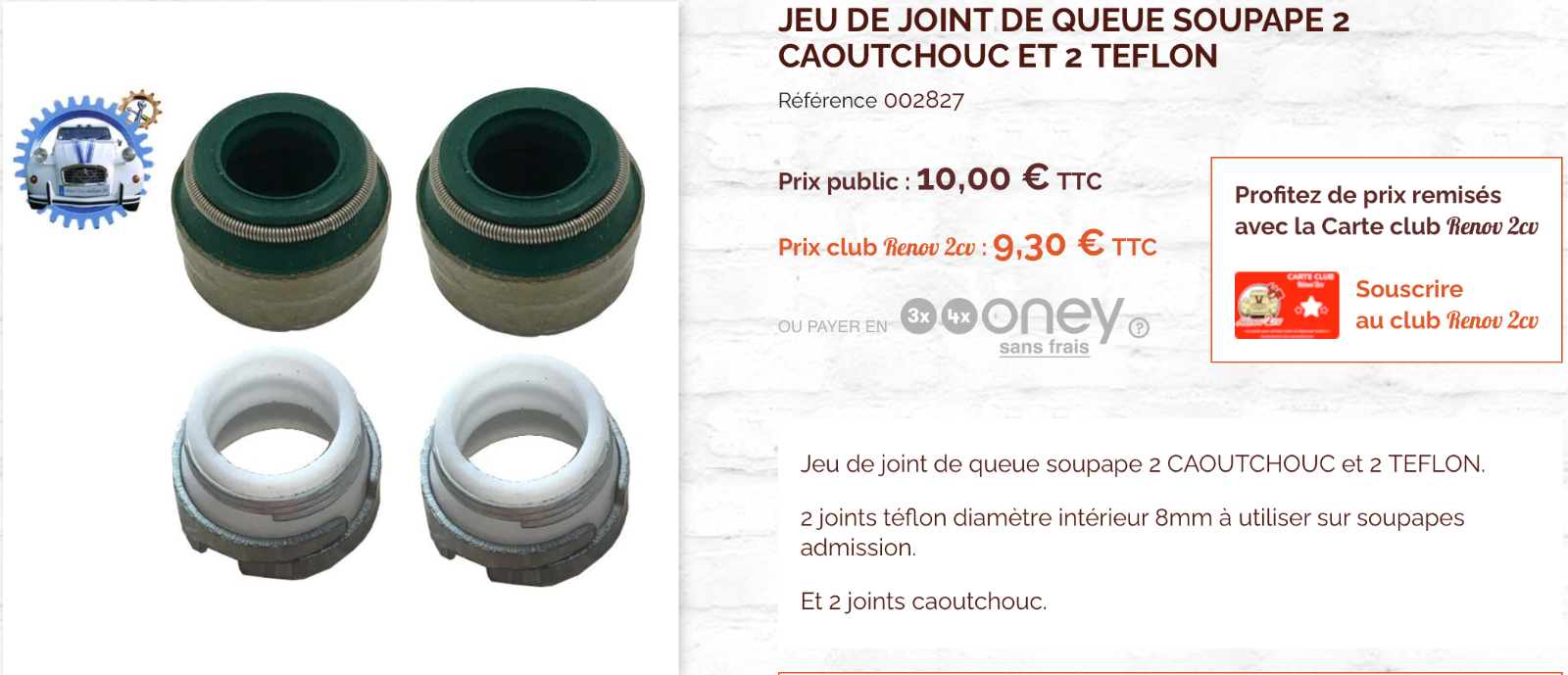 va voir sur rénove 2cv ,il te dise les joints les vert et en téflont ,ou il vont ,je n'arive pas a te mettre le lien