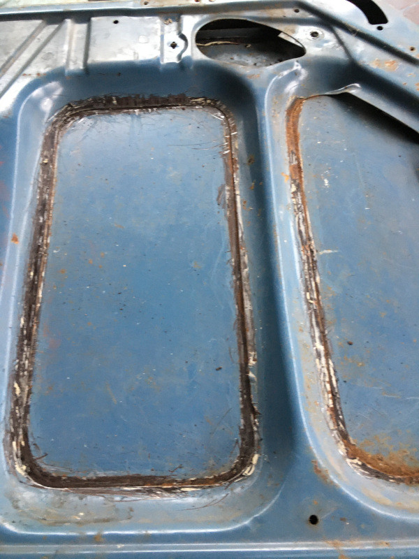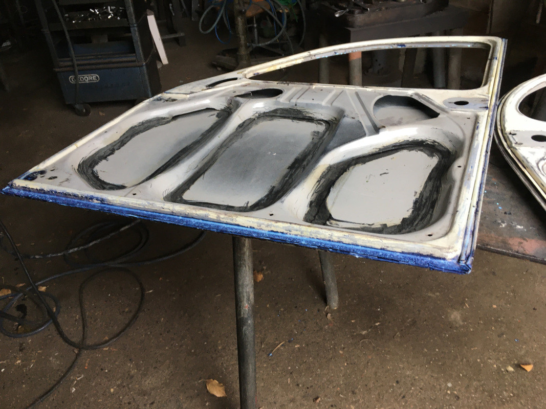 En ce qui concerne les feuillures qui pincent le joint, les miennes étaient aussi pourries mais en démontant j'ai vu qu'elles ne sont soudées que sur 3 points (extrémités et milieu), la partie inférieure est elle juste prise en sandwich avec le repli de tôle de la portière (quand il est pas parti en miettes). Les 3 points restent invisibles sur l'extérieur, il faut meuler avec un disque fin l'intérieur en contact avec le joint.