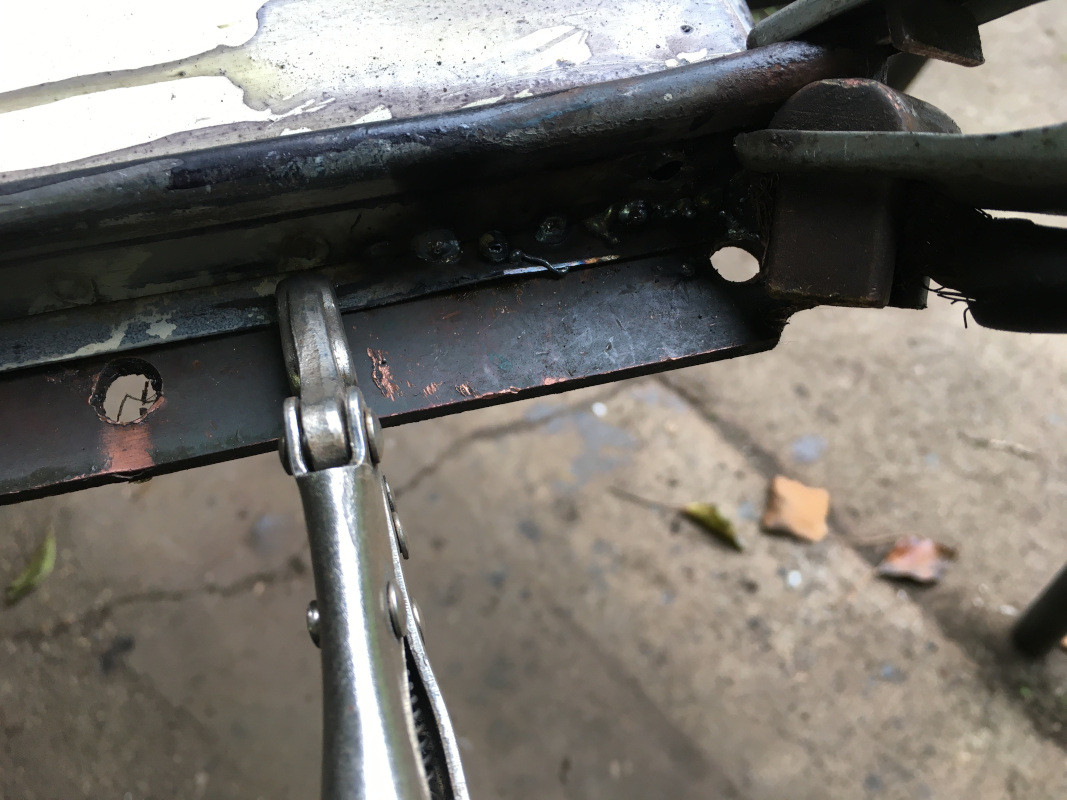 Comme tu le dis la tôle est d'origine très fine, avec la corrosion c'est encore plus fin et de manière très inégale rendant les opérations de soudure très délicates voire impossibles.