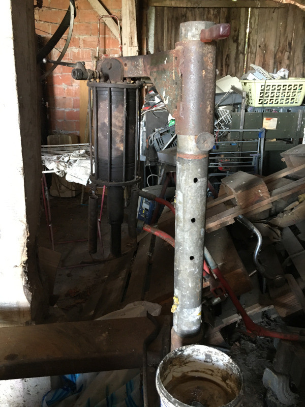 Il est muni d'un piston vissé en son centre, en cuir de pompe à eau, telle qu'on les rencontrait à la campagne dans les années 30 :