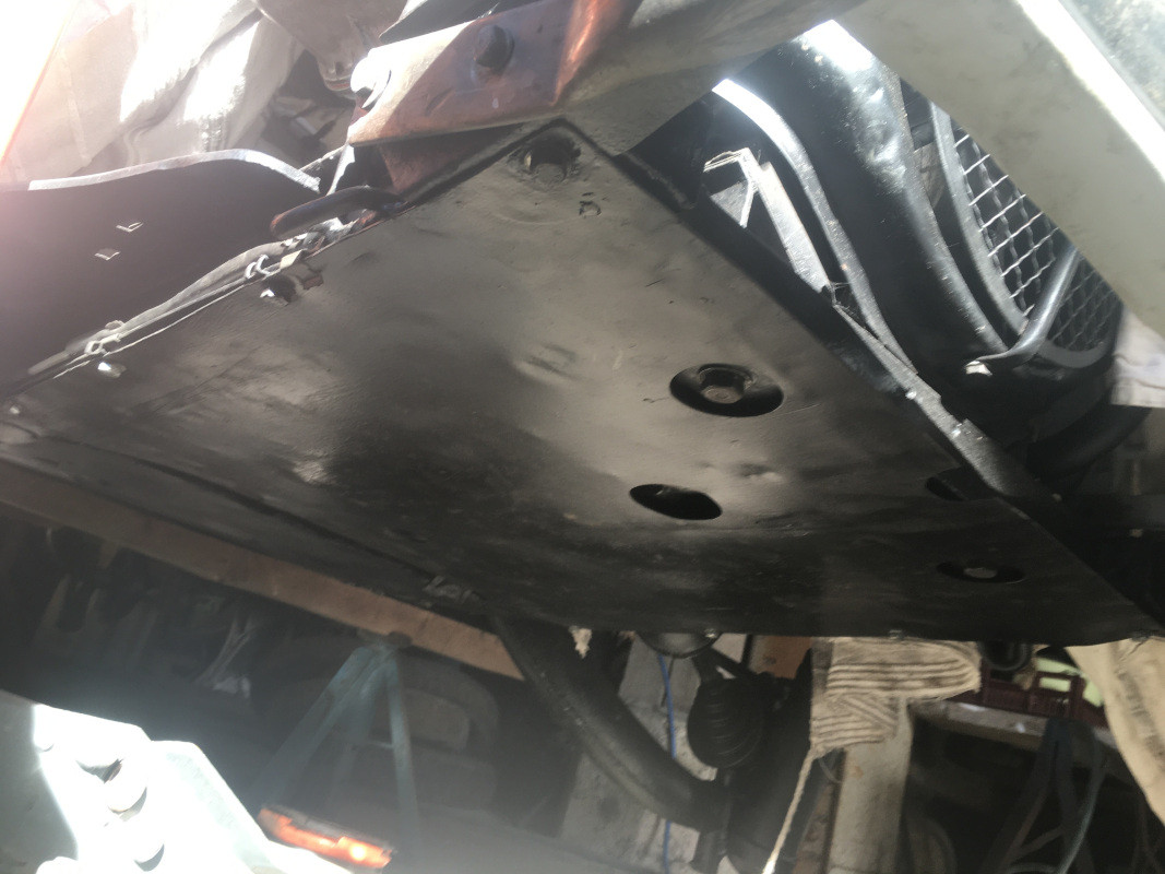 Ensuite, j'ai monté la plaque de protection du groupe motopropulseur. Rien de bien compliqué :