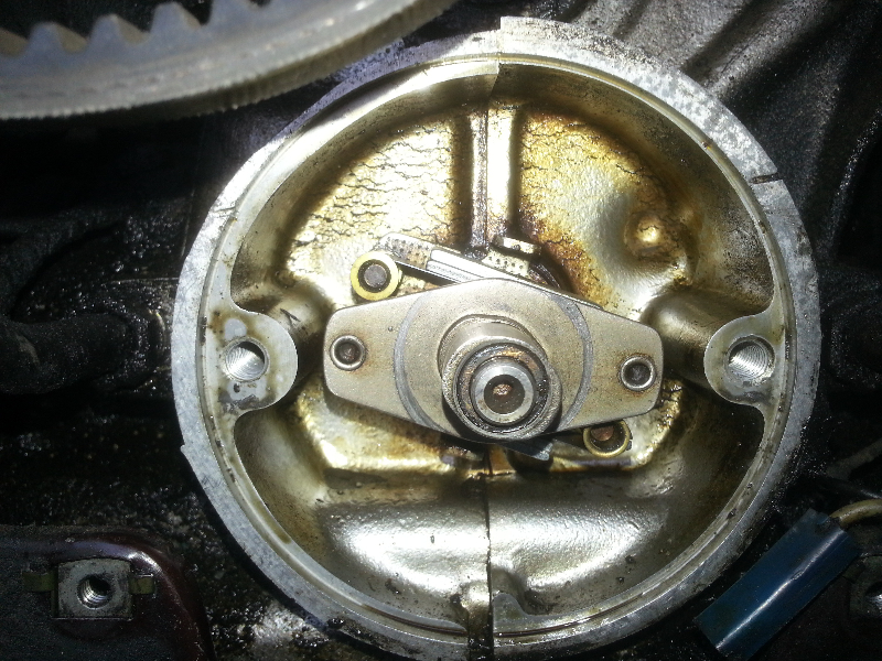 Une photo de la position du boitier d'allumage tourné au maximum (moteur pigé) : les rupteurs ne sont toujours pas ouverts ...