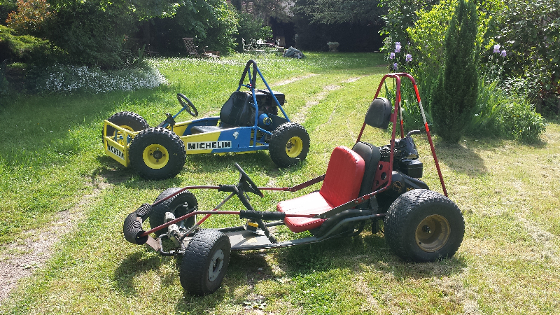 j'ai aussi un petit kart tout terrain ,c'est un jouet,160cc 4temps a soupapes laterale ,un moteur de motoculteur dévéloppant a peine 5,5 chevaux mais il est tout de meme sympathique a l'utilisation :D
