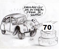 N'empêche que si ce n'est pas vraiment la journée anniversaire de nos deuche aujourd'hui, et bien quoi qu'on fasse, nos 2CV n'auront sur leur gâteau d'anniversaire jamais plus de... 2 bougies... même pour leurs 70 ans.