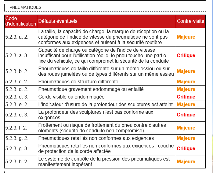 J'ai trouvé un tableau récapitulatif sur les points de contrôle au CT ,