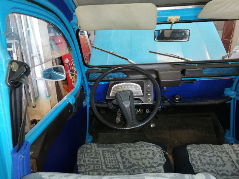 L'intèrieur me fait penser à une 2cv fr3 double siège portes etc.. bon pas le bon tableau de bord certes mais celui là me plait assez.