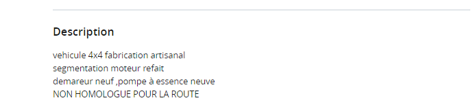 Il est à noter que cette voiture doit être livrée avec un CT validé, vu les photos, il y a du boulot !