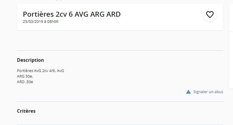 Quoi que !!!! si on décent l’annonce il marque Renault de 87 , mais le titre c'est 2 cv .