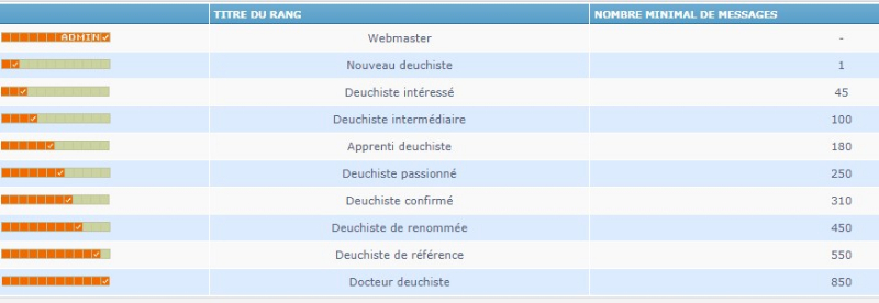 Mikey 71 a écrit :Au faite, serait il possible d'avoir la liste des différents statuts du forum ? :pouce:
