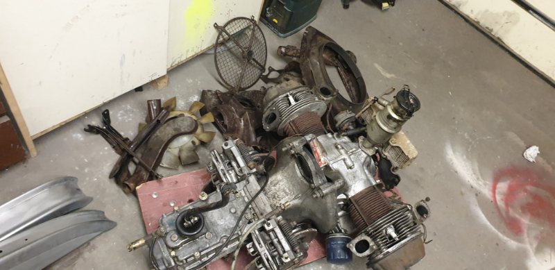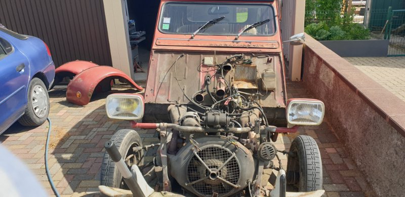 Oui une dolly les pneus viennent de chez renov 2cv voilà entièrement démonté prochaine étape nettoyage du moteur au Karcher puis sablage