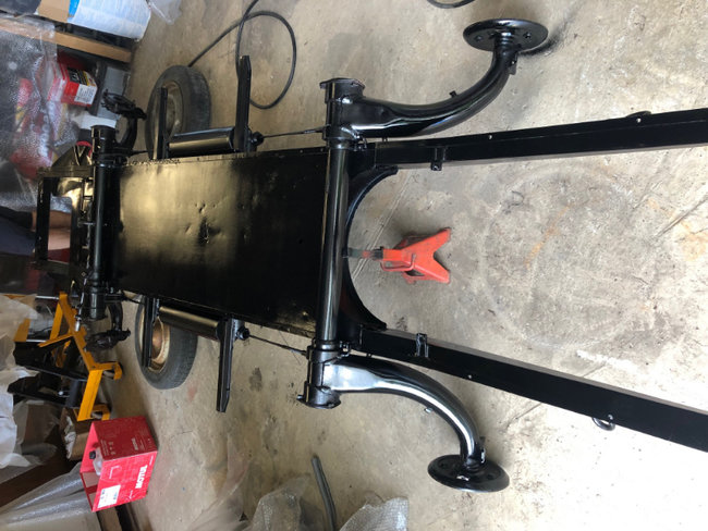 tôle supérieur du châssis remplacé , jeu des bras refait , frein démonter et kit commandé, ponçage complet du châssis et des trains , peinture certainement milieu de semaine.