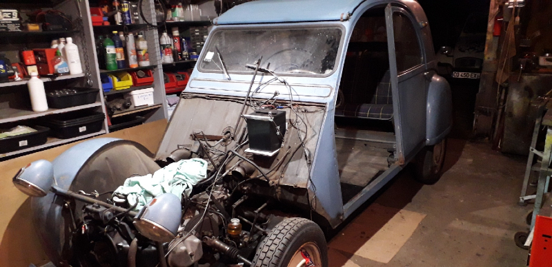 aidé d'une connaissance dans le monde de la 2CV , nous avons changé le bas de caisse complètement pourri par le squatte de souris ! moteur intégralement nettoyé et freins refaits (merci encore P.)