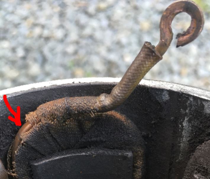 - la "fourchette" et bien marquée, notamment sur un côté : - dans le stator, l'isolant autour des fils en cuivre me paraît bien fatigué, et au démontage il a craqué sur quelques mm : et l'ensemble est très sale...