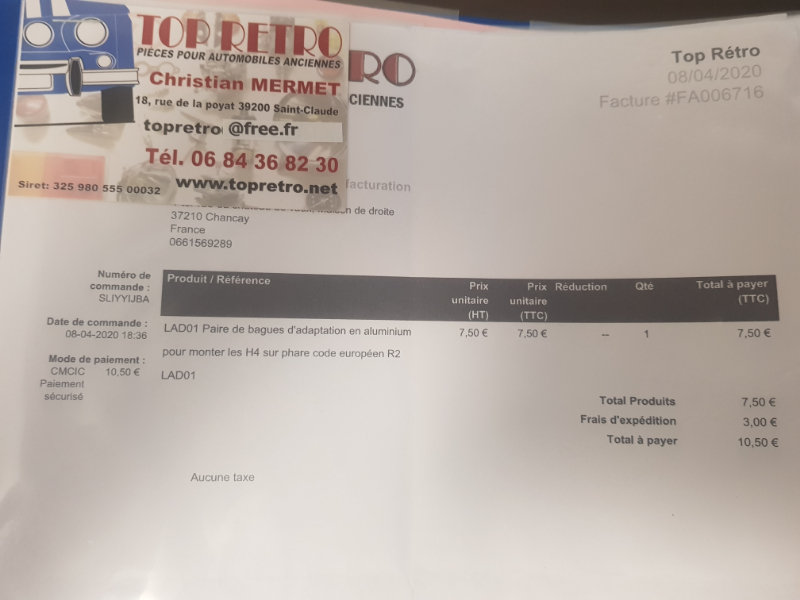 Pour les bagues voici la facture ca a mis environ 5 jours pour arriver dans ma boite