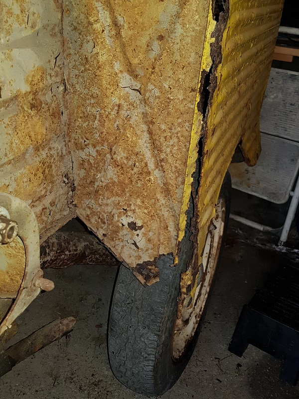j ai aussi demonté l habillage en tole a l arriere dans la caisse . pas terrible non plus ! la tole est pas mal deformée en plus de la rouille !