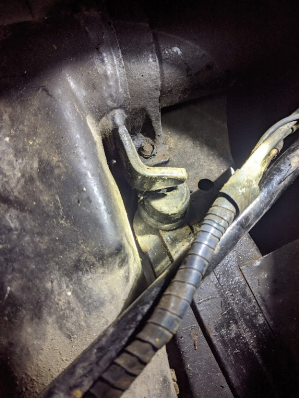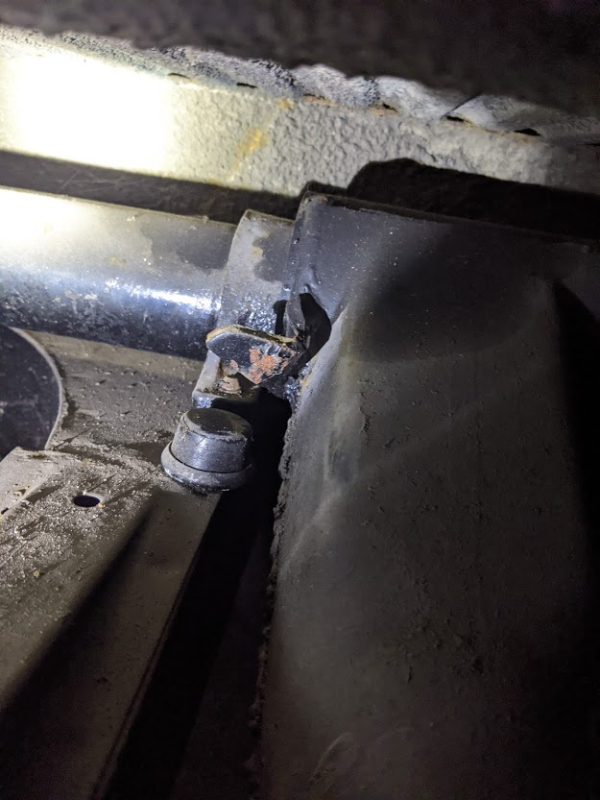 Butée avant gauche : Butée avant droit : La gauche à donc une rondelle soudée et attachée au bras via 2 fer, et la droite comporte juste un fer plat soudé et cintré (la butée caoutchouc est d'ailleurs bien enfoncée et à changer)
