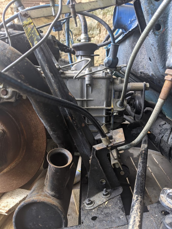 Certaines pièces ont étés remontées à la va vite, notamment le frein a main (adapté au passage en frein a disques) qui était nécessaire pour le transport sur plateau. le voilà : Ce qui m'a mis la puce à l'oreille est que l'ensemble venais presque toucher le maître cylindre
