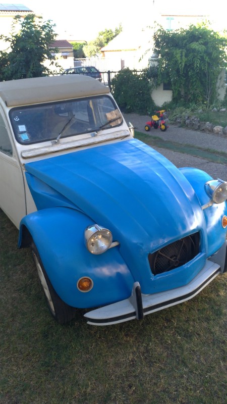 Je me lance ! Cela fait plusieurs semaines que je parcours le site 2cv legende et le forum où j'ai pu apprendre plein de choses. Je suis le très prochainement propriétaire d'une 2cv AZ de 1978 que je récupère de mon père qui ne l'utilise plus beaucoup. J'ai refait la peinture moi même (oui je sais cela se voit) faute de budget mais je ne désespère pas un jour de faire appel aux services d'un vrai carrossier.