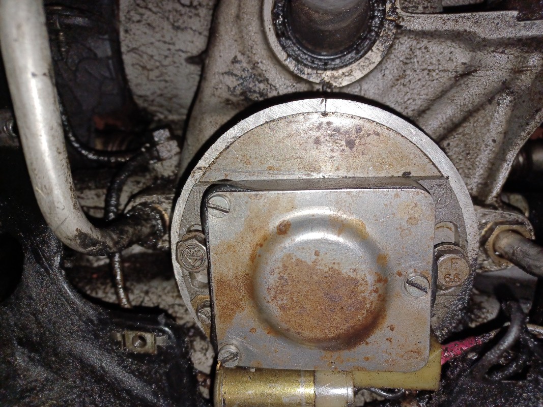 En attendant j'ai fait le calage avec le lampe (enfin avec le voltmètre) et j'ai dû décaler l'allumeur dans le sens antihoraire. Voir photo la position initiale matérialisée par la ligne faite à la pointe sur le métal.