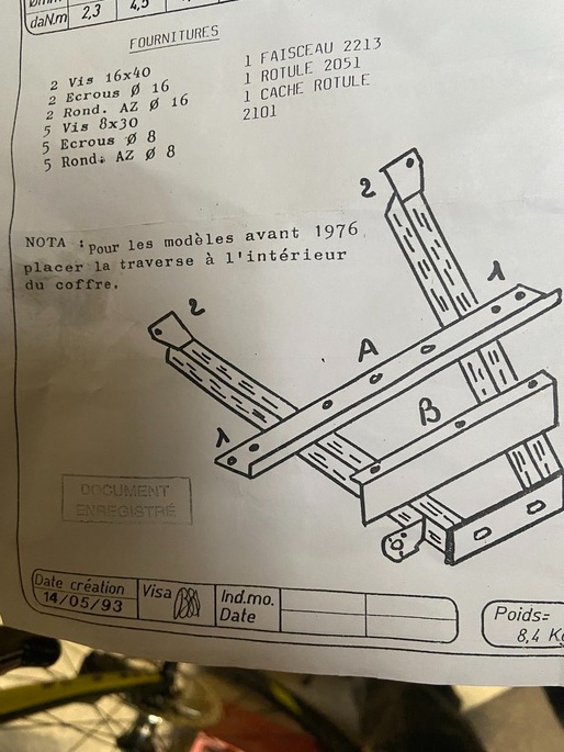Tu fixes ton attelage aux différents points sur la caisse et supports de pare choc.