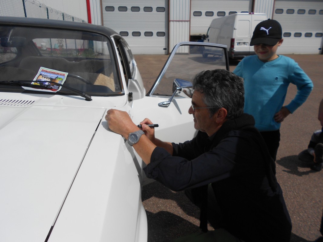 Eh non, aller je te donne la réponse. Bruno Saby. Ils ont tous deux gentiment signés notre ford capri. Pas du tout fier, ils sont venu nous parler sans rien qu’on leur demande.