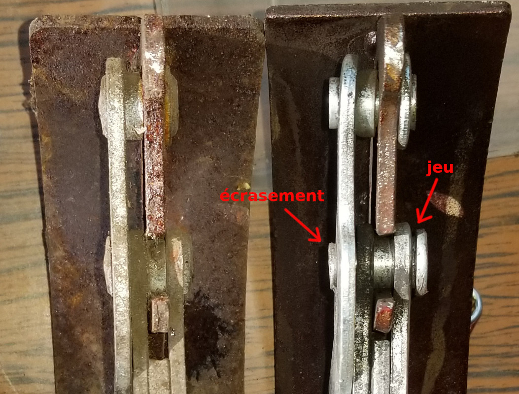 En comparant avec la pièce d'origine que j'avais gardé dans un coin, au delà du fait qu'on voit bien que le métal est de meilleur qualité et les pièces plus fines, je réalise que d'origine il y avait une encoche pile à cet endroit :
