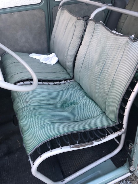 mes sièges tissu bayadère verts qui je pense pour ceux de la banquette avant doivent être d’origine… je vais bientôt passer à travers… donc il faudra investir.