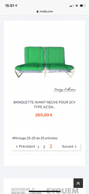 Je n'ai pas dit le contraire, ils sont très sérieux juste que leurs bayadères ne sont pas au top.CHARLYSTONE a écrit : ↑07 nov. 2021, 09:27 Bonjour Jean Marc, toutes les commandes passées chez TPV, se sont bien déroulé, mais moi je possède des 2cv "moderne "en plus ils réponde rapidement au téléphone, pour tes bayaderes je ne connais pas les tailles