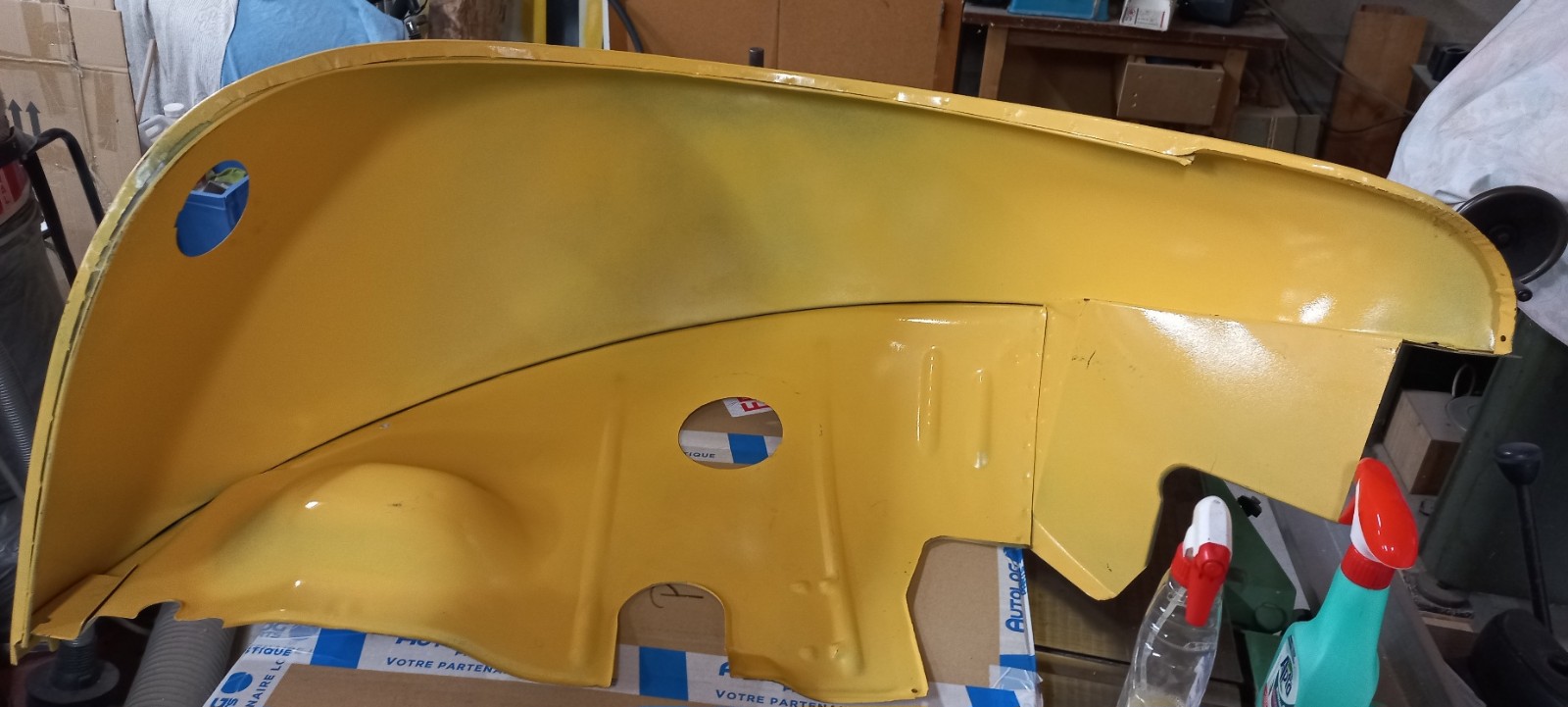 Il me restait un petit fond de peinture, j'en ai profité pour passer cette peinture au pinceau sur le bord intérieur de l'aile pour bien protéger cette zone, qui n'est pas facile d'accès au pistolet...