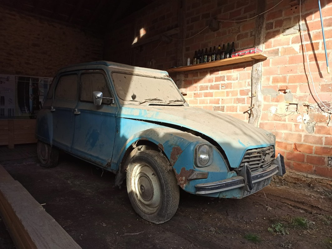 Laurent propriétaire depuis peu de 2 dyanes sorties de grange entre le Loiret et la Sologne, dont une va en restauration.