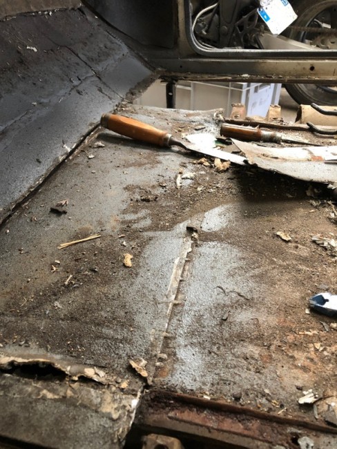 donc en résumé le chassi a ete mortelement disqué et les toles plancher chassis : pas rebouchonnées , puis le plancher pedale pas ressoudé mais collé au silicone