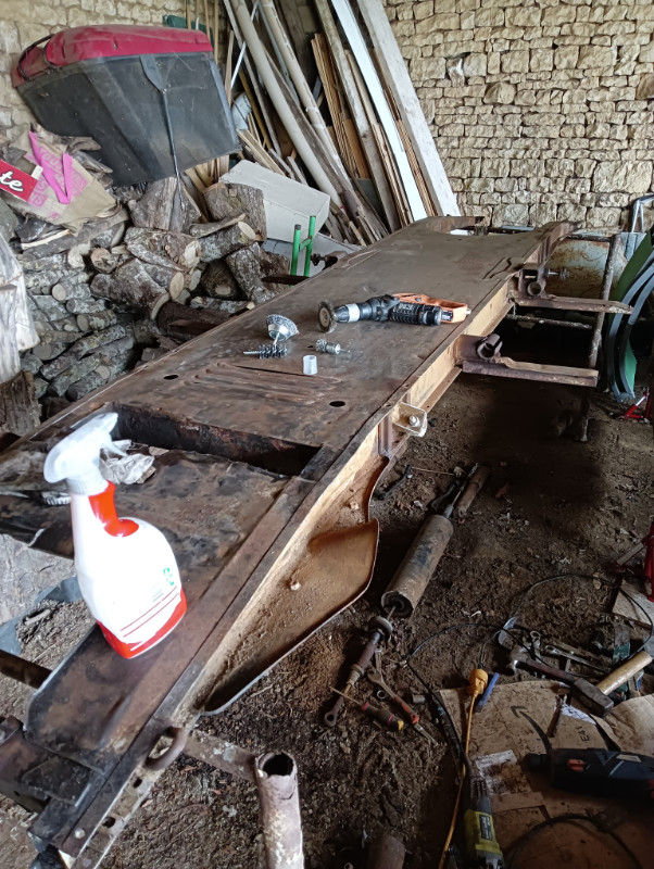 Tout est à refaire, enfin presque ^^ je viens de finir de restaurer le châssis et une remise en condition partielle du moteur... Reste, frein, longeron, plancher......................et ++++