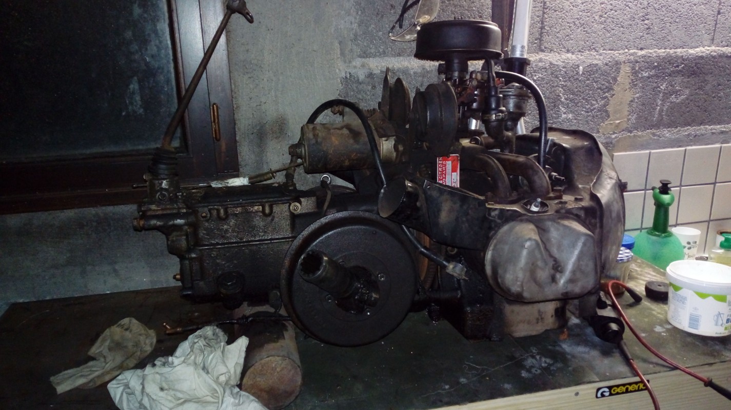 Aujourd'hui c'est bien une 2CV qui m'amène à vous. Une vieille dame de 1960. C'est une histoire de famille, mon beau-père a trouvé la dame endormie depuis 40 ans dans une grange et il s'occupe de la caisse et de la carrosserie. Je me retrouve donc avec un magnifique moteur 425 cm3 dans son jus dans mon garage. Me voici donc parti dans une restauration complète. Je me suis retrouvé de nombreuses fois à chercher des infos sur ce forum. Aujourd'hui j'ai besoin d'échanger sur certains sujets avec des passionnés et des experts. Je suis également prêt à partager mon expérience et apporter mon aide si je peux.