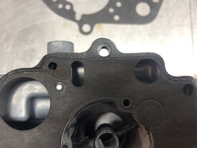 Sur un 26/35, à gauche, c'est l'emplacement du petit gicleur principal 1 corps (celui tout petit, qui est planqué) (à droite, c'est l'orifice du circuit inter-cuve)