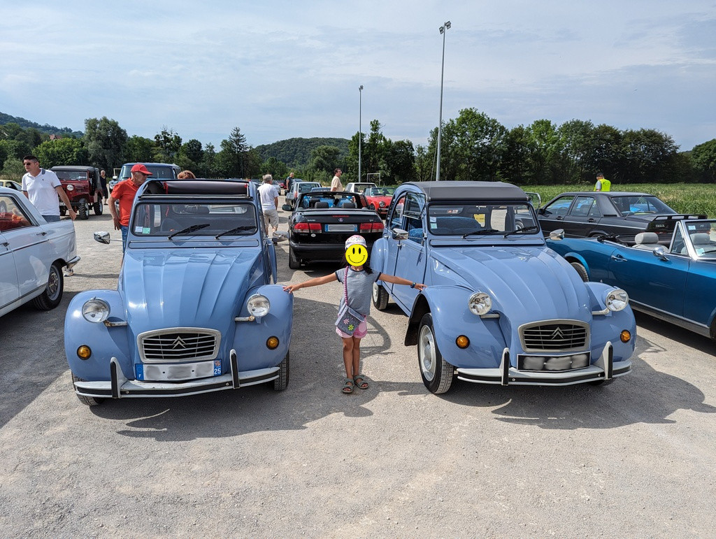 La princesse à son Pôpa chéri était de la partie, très contente d'aller voir de jolies voitures anciennes et de faire un tour en deudeuche décapotée.