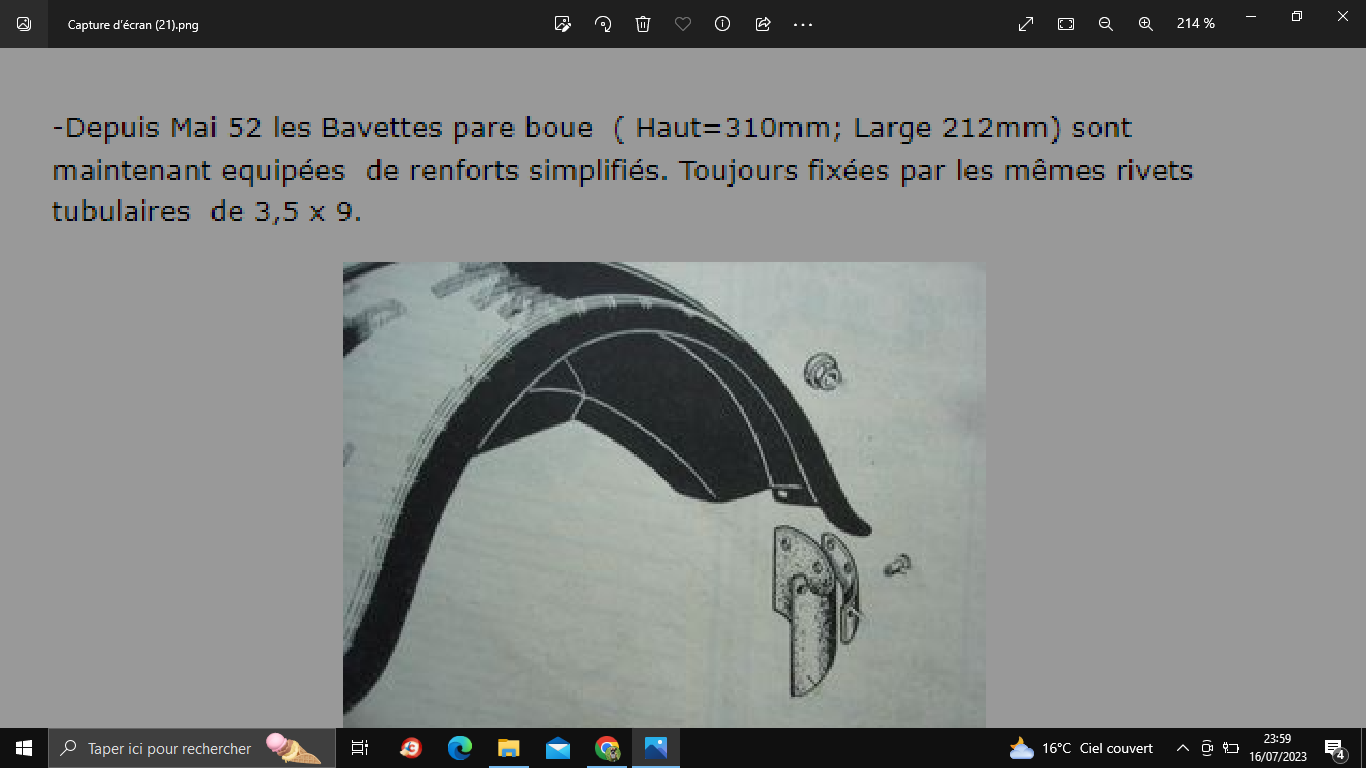 Qui nous dira à quelle époque se faisaient les renforts en fer de bavette d’aile avant?